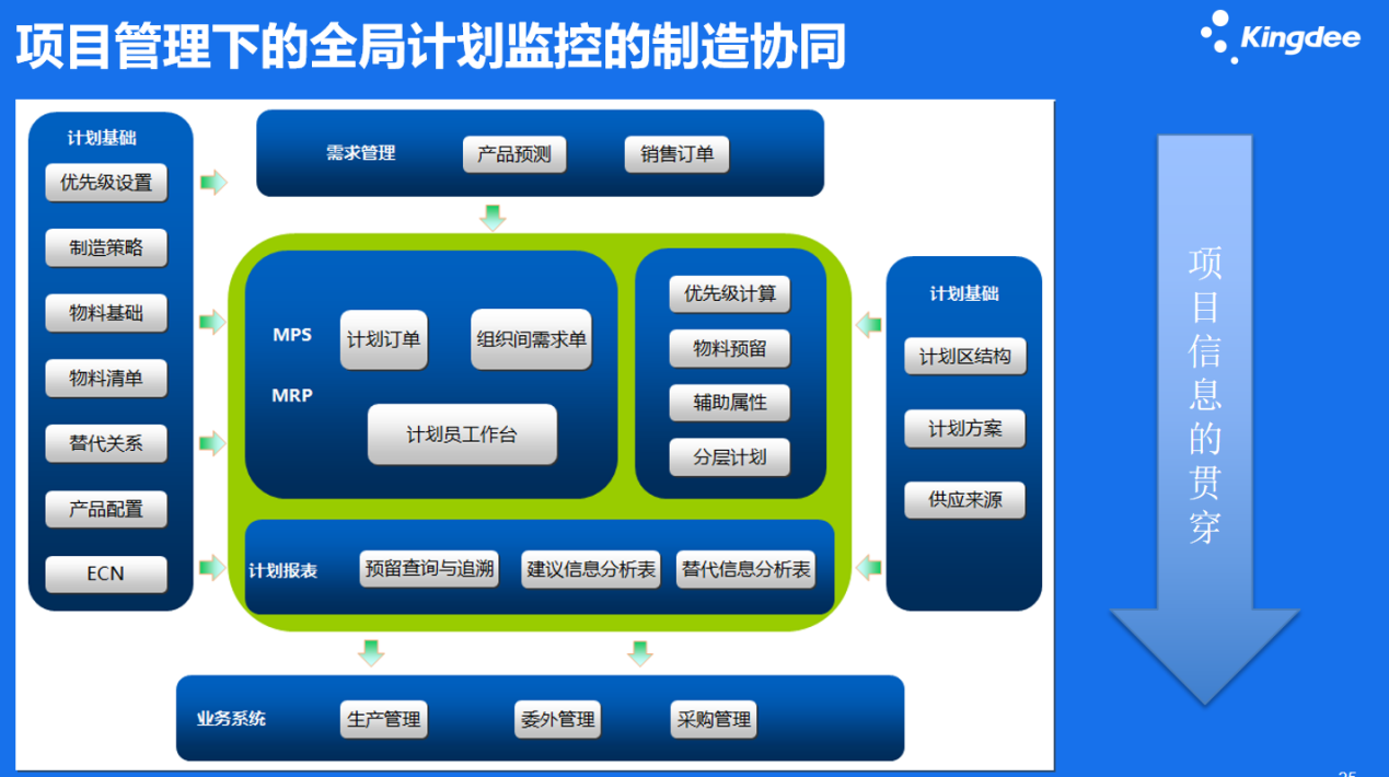 通過項目管理下的全局計劃監(jiān)控系統(tǒng)建設,從計劃基礎和需求管理建立規(guī)范的全局計劃管理體系,并通過系統(tǒng)將計劃數據推送至業(yè)務系統(tǒng)的生產、委外和采購管理。