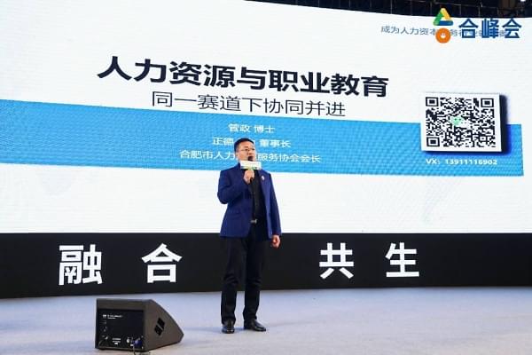 合肥市人力資源服務(wù)協(xié)會會長、正德人力董事長管政博士,做了《人力資源與職業(yè)教育:同一賽道下協(xié)同并進》的主題演講,首先從統(tǒng)領(lǐng)全局的高度,拋磚引玉式的引起參會者的強烈反響與共鳴。