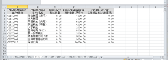 引出后科目初始數(shù)據(jù)顯示在第一個工作表,并分科目顯示核算維度初始數(shù)據(jù)。